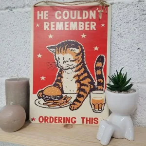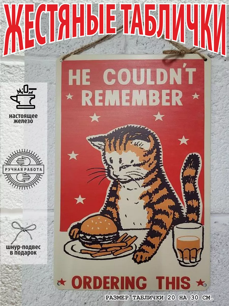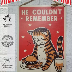 Он не мог вспомнить, заказывая это- текст на картинке. Представляем вам стильные и эффектные жестяные таблички и картины, в том числе удивительные изображения котов на картинах художников. Все наши постеры, включая жестяные таблички, выполнены из высококачественного металла, обеспечивающего долговечность и устойчивость к солнечному свету. Размер 20×30 см позволяет легко интегрировать их в любой интерьер – будь то кухня, гостиная, офис или кафе.