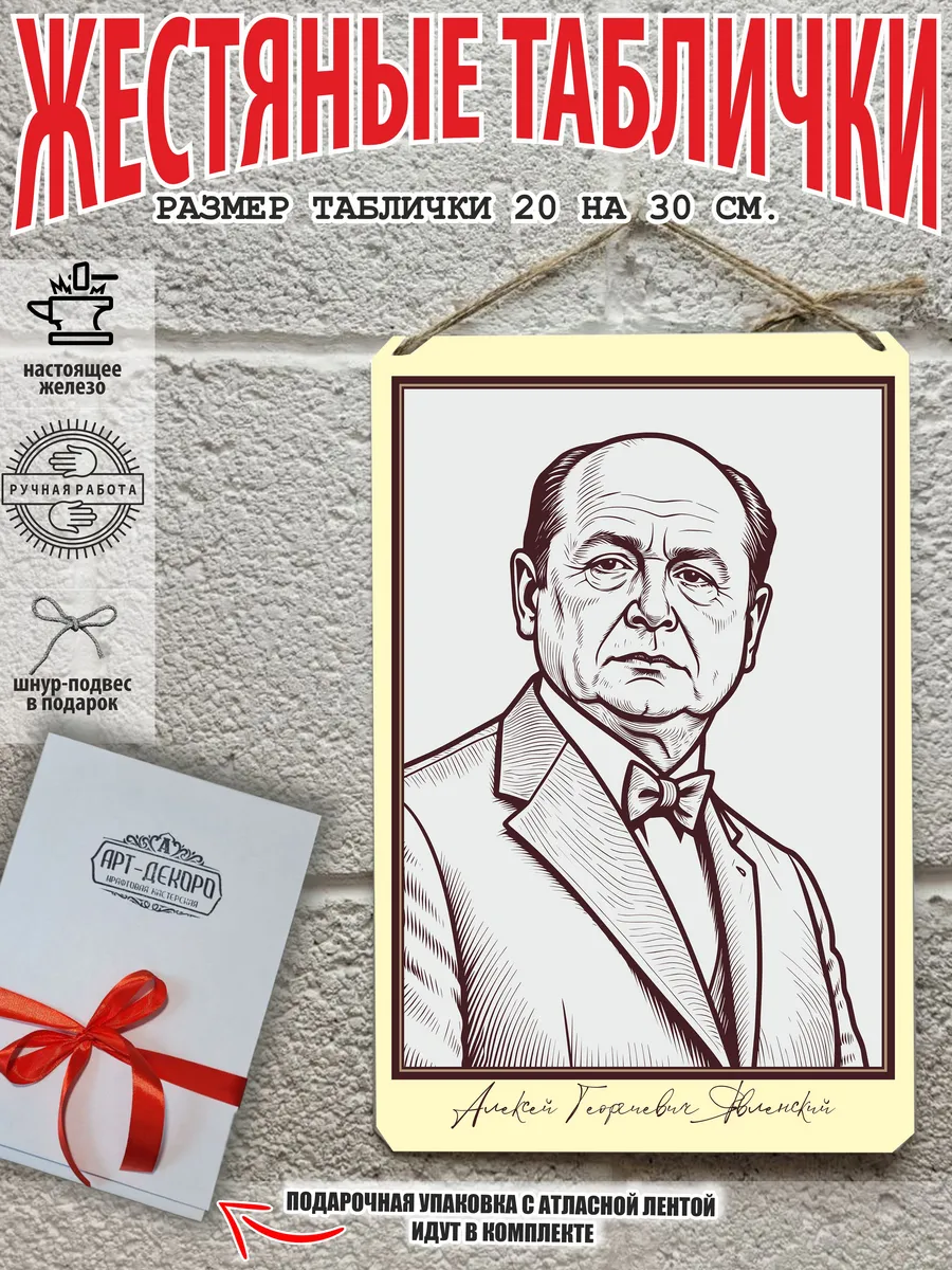 Представляем вам стильные и эффектные жестяные таблички с изображением известных художников. Наши постеры портреты — жестяные таблички, выполнены из металла, который отличается высоким качеством и долговечностью. Размер 20×30 см позволяет легко вписать наши картины в любой интерьер, будь то кухня, гостиная, офис или кафе, школьный кабинет. Почему стоит выбрать наш постер для интерьера? Яркие и насыщенные цвета не выгорают на солнце и делают ваше пространство выразительным и уникальным. Легкость в уходе: наши картины для интерьера, таблички на дверь и постеры на стену можно легко мыть. Они не боятся влаги, что позволяет использовать их как в помещениях, так и на улице. Удобные варианты крепления: табличка может быть установлена на саморезы, гвозди, кнопки, клейкую ленту, магниты или повешена на шнур из натурального джута, который идет в комплекте. Упаковка: каждая табличка аккуратно упакована в защитный пакет и дополнительно завернута в эко-картон, а также дополнительно в комплекте идет подарочная упаковка, атласная лента и открытка — что делает её отличным подарком на любой случай – от дня рождения до новоселья – готовый подарок. Мы гордимся тем, что предлагаем более 15 000 уникальных дизайнов, включая постеры на стену для интерьера, постер на заказ и прикольные металлические таблички, чтобы каждый мог найти что-то для себя. Наши постеры разделены на коллекции разных серий, что позволяет заказать несколько табличек в едином стиле и создать неповторимую композицию у вас дома, не упустите возможность сделать свой дом стильным – добавляйте товары в избранное, чтобы первыми узнавать о скидках и новинках! Создайте атмосферу уюта и стиля с нашими металлическими картинами и постерами для интерьера уже сегодня!